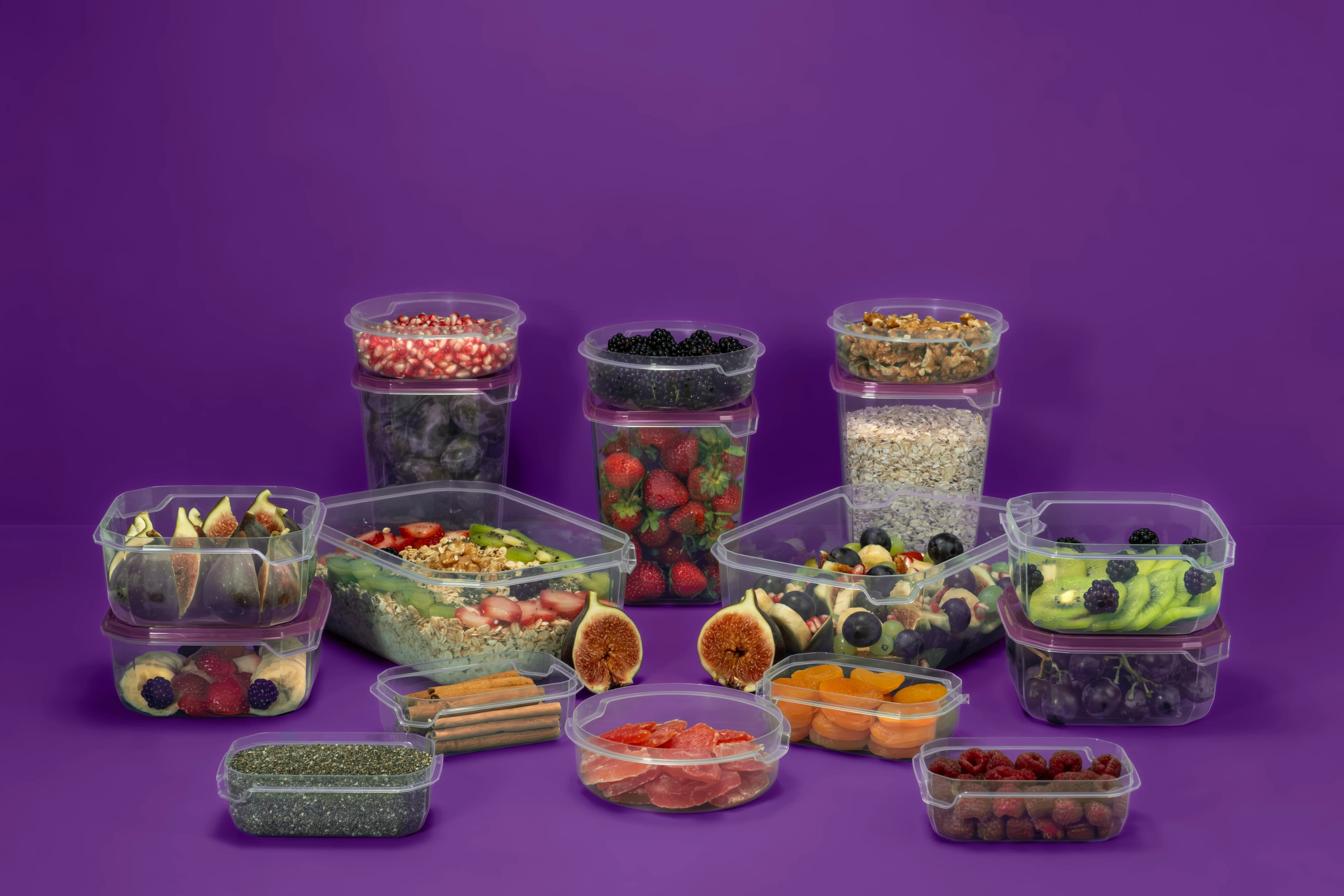 - Volume (ml)1 x (4 x 260 ml Square - 4 x 406 ml Round - 4 x 795 ml Square - 3 x 1,24 L Cubic - 2 x 2,2 L Rectangular)
